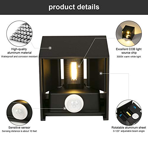 Details: Kingwei 2 Stücke LED Wandleuchte Aussen 12W mit Bewegungsmelder Aussenlampe IP65 Led Wandlampe 3000K Außenwandleuchte…
