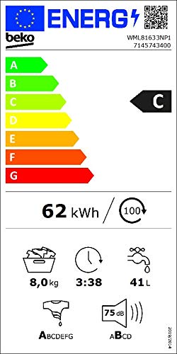 Details: Beko WML81633NP1 Waschmaschine/ 1600 U/min/Pet Hair Removal/ 8 kg/ Energieklasse C