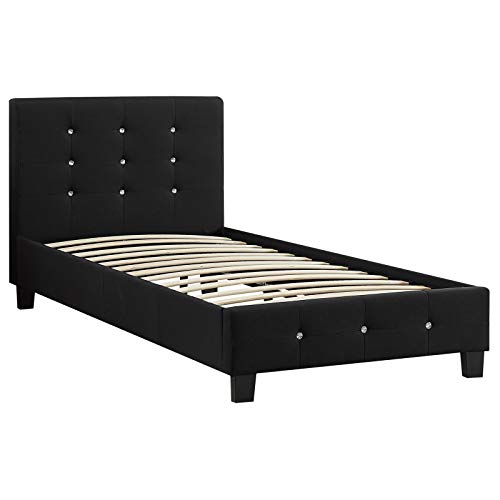 Details: CARO-Möbel Polsterbett Delaware Bettgestell 90 x 200 cm Einzelbett Designbett mit Strassteinen inklusive Lattenrost…