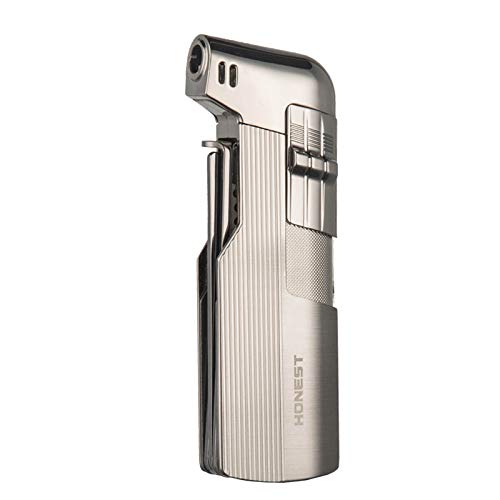 PROMISE Pfeifenanzünder Soft Flame Butan Nachfüllbarer Gasanzünder mit Rohrreinigungswerkzeugen(Silber)
