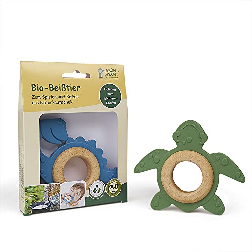 GRÜNSPECHT Bio-Beißtier aus Naturkautschuk mit Holzring, Zahnungshilfe & Spielzeug, massiert Zahnfleisch, BPA frei…