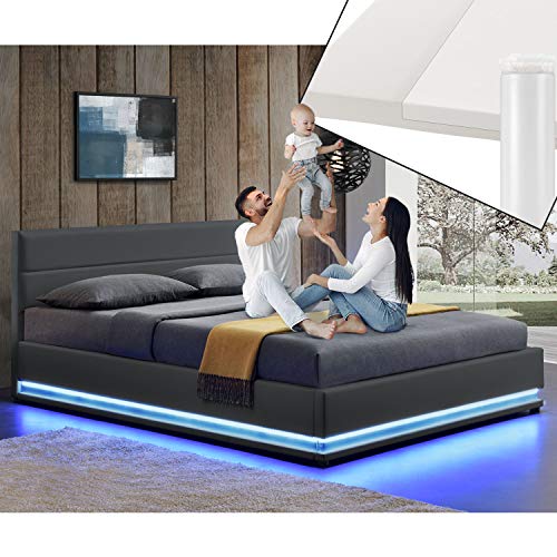 ✅ Es werde Licht — Doppelbett mittels LED-Leiste taucht den abgedunkelten Kosmos in indirektes Licht; stilvolle & nützliche Orientierungshilfe in dunklen Schlafräumen; Verletzungsrisiko wird so minimiert