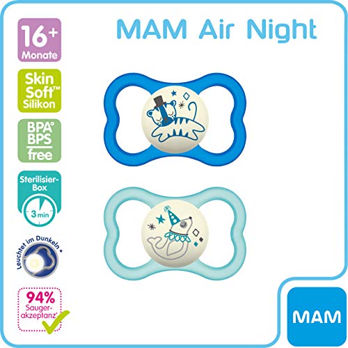 Details: MAM Air Night Silikon Schnuller im 2er-Set, zahnfreundlicher und leuchtender Baby Schnuller, extra leichtes und luftiges…