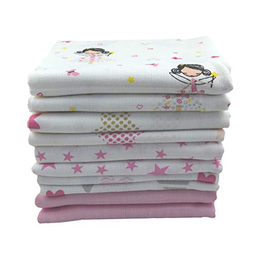 Mullwindeln 10 Stück Mix | Spucktücher Baby | Stoffwindeln 80 x 70 cm | Saugfähige Mulltücher | Öko-Tex (Set Mädchen)
