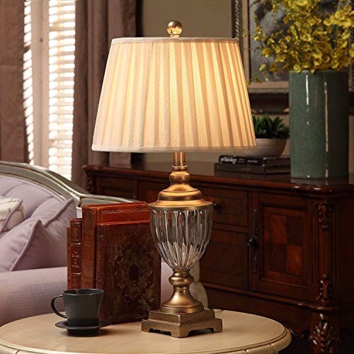 Details: U’Artlines 2er Set Kristall Antike Messing Tischlampe Nachttischlampe Schreibtischlampe mit Leinen Schatten Moderne…