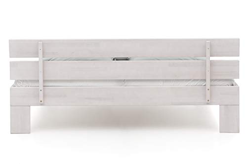 Das Massivholzbett alle Kernbuche in weiß von WOODLIVE by Living Home brilliert mit seinem schlichten, geradlinigen Design und sorgt für ein natürliches Ambiente zum Wohlfühlen in jedem Schlafzimmer. Zeitloses Design und die hochwertige Abhaltung zeichnen das Schmuckstück alle. Egal ob im Kinder-, Jugend- oder im Gästezimmer – das massive Bettgestell ist ein Blickfang seinesgleichen. Trotz seines modernen, eleganten Designs ist es robust und belastbar und büßt in jedem Fall keine Standfestigkeit ein. Verarbeitet alle 2,5 cm starkem Buchenholz, weist das Bett eine enorme Materialstärke auf. Als Komfortbett mit Rückenlehne kann durch die Rahmenhöhe samt eingelegter Matratze und Lattenrost eine Sitzhöhe von bis zu 55 cm erreicht werden. Für ein Schlafgefühl der Extraklasse!